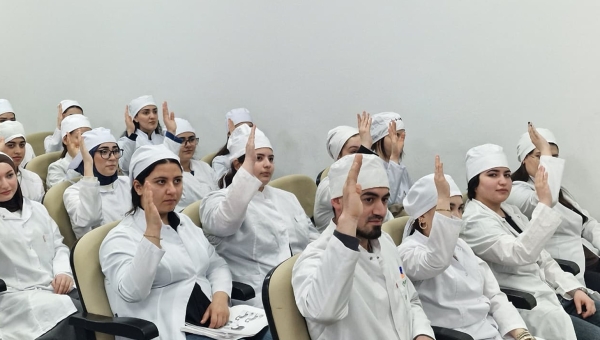 Mən, tibb işçisi kimi humanist peşə sahəsində fəaliyyətimə başlayarkən Azərbaycan Respublikası Konstitusiyasına və qanunlarına riayət edərək səhiyyəmizin tarixi ənənələrinə sadiq qalacağıma,insanlara keyfiyyətli tibbi xidmət göstərəcəyimə,onlarla münasibətdə qeyri-etik davranışa yol verməyəcəyimə, həmkarlarımla və xəstələrlə münasibətimi hörmət və ləyaqət əsasında quracağıma, peşə fəaliyyətim zamanı baş verənləri, gördüklərimi və eşitdiklərimi bir sirr olaraq saxlayacağıma, tibb işçisi adını və şərəfini hər zaman uca tutacağıma təntənəli surətdə and içirəm! Qoy həyatımda nəsibim olacaq xoşbəxtlik və insanların mənə rəğbəti, andıma sadiq qalmağımın təsdiqi olsun!